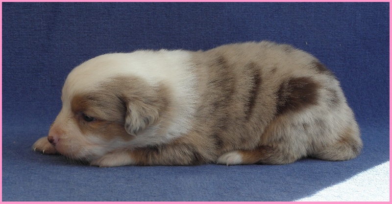 Felya petite rouge merle! Avec un caractère extra, quelque peu timide au premier contact mais à la première caresse elle ne vous quittera plus! C'est un amour!